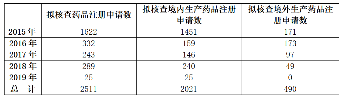 表3.2015~2019年國家藥監(jiān)部門公布收到的已完成臨床試驗申報生產或進口藥品注冊申請擬進行藥物臨床試驗數據核查情況