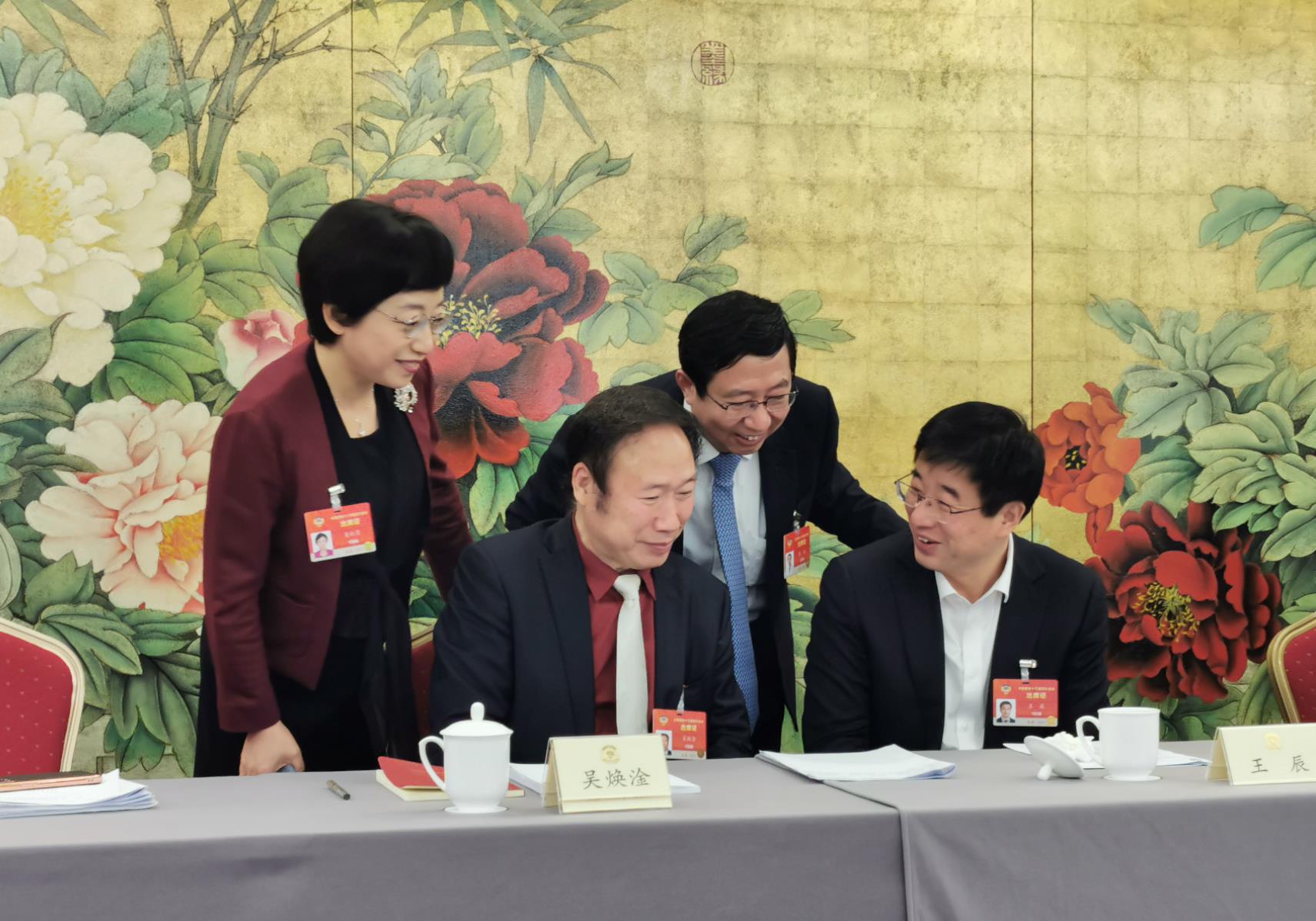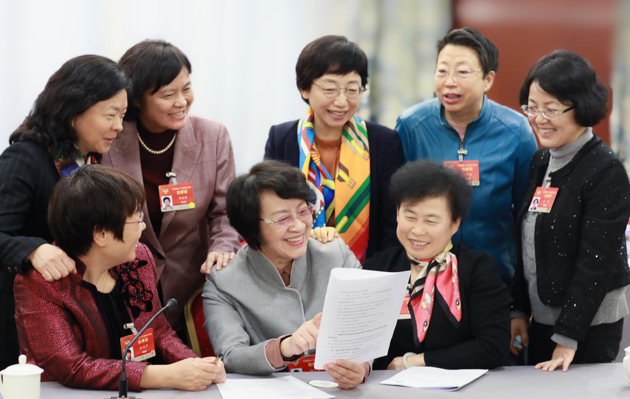 “三八”婦女節(jié)前夕,全國政協(xié)醫(yī)藥衛(wèi)生界別的女委員們在小組會召開之前討論政府工作報告。 (肖新月 供圖)