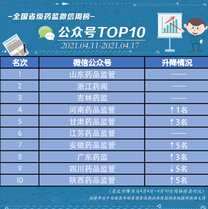 全國省級藥監(jiān)微信公眾號榜單|4月11日~4月17日周榜揭曉