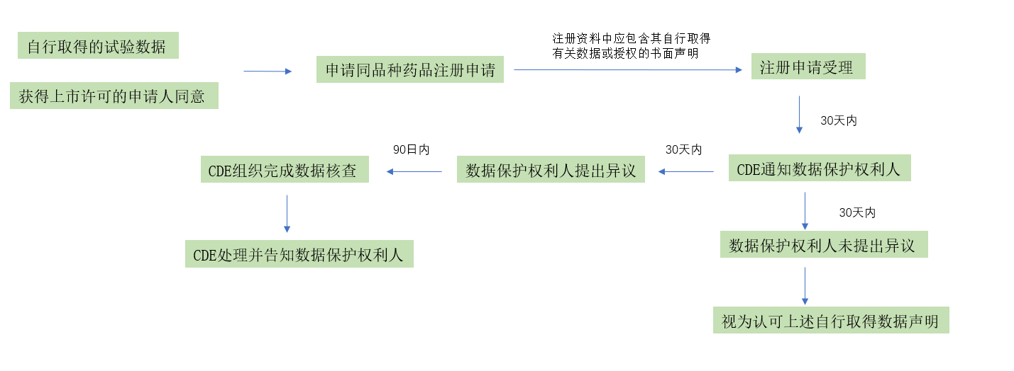 對于保護期內(nèi)同品種上市申請,《征求意見稿》提出的藥品試驗數(shù)據(jù)保護相關(guān)流程如下: