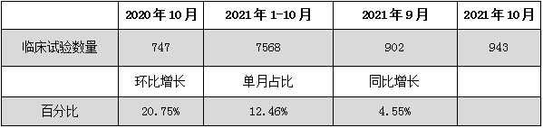 表3. 10月臨床試驗適應(yīng)癥數(shù)據(jù)
