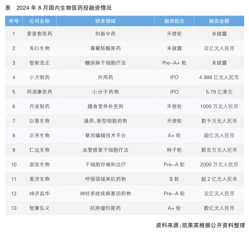 8月份13家國內(nèi)生物醫(yī)藥企業(yè)完成新一輪融資
