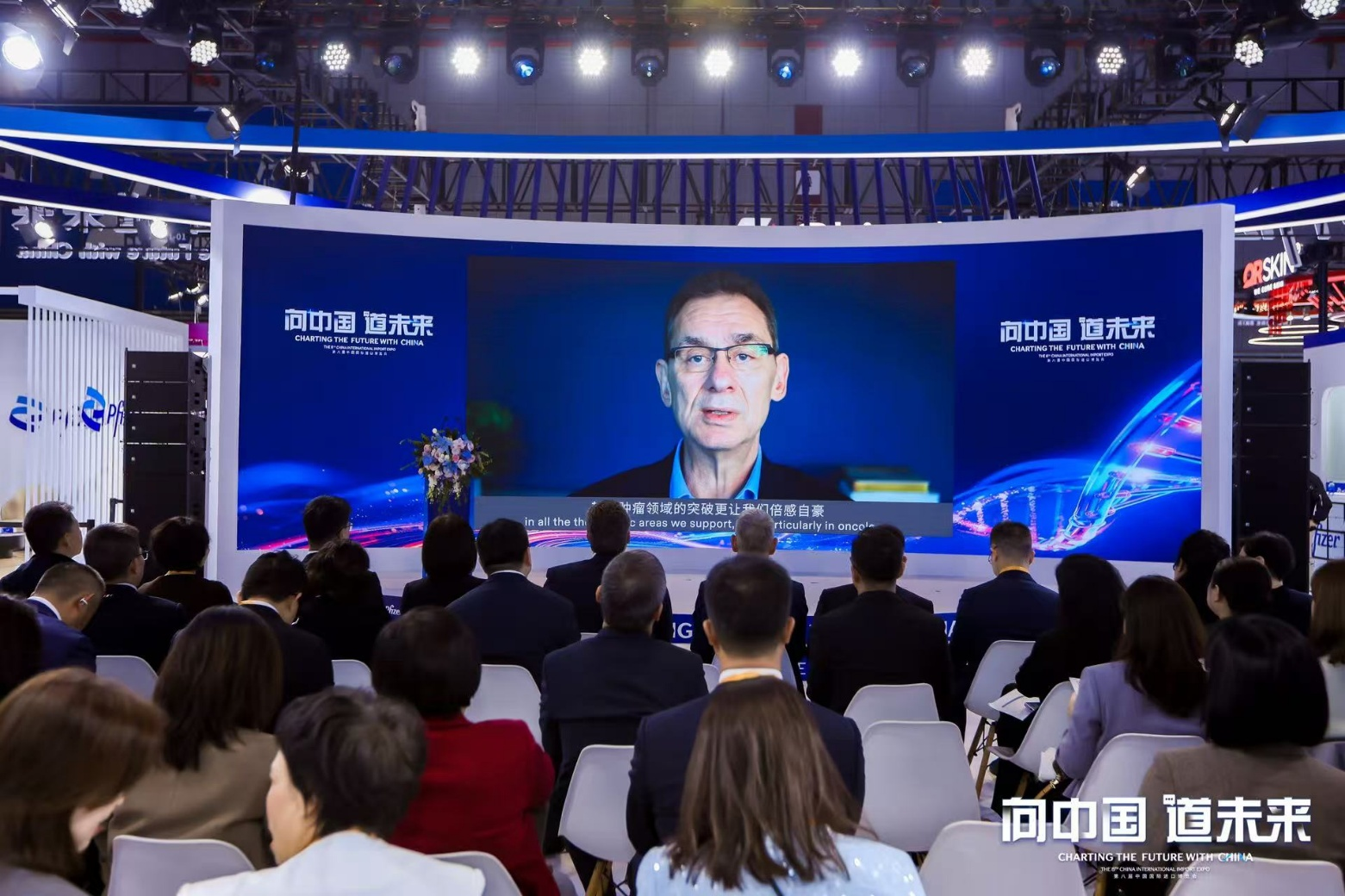 開館儀式上,輝瑞董事長兼首席執(zhí)行官艾伯樂(AlbertBourla)、輝瑞首席國際市場商務(wù)官兼執(zhí)行副總裁安卓遠(AlexandredeGermay)通過視頻致辭,向第八屆進博會啟幕致以熱烈祝賀。艾伯樂(AlbertBourla)表示:“中國是輝瑞全球戰(zhàn)略不可或缺的一環(huán)。我們深信,唯有依托前沿科學(xué)、突破性療法與廣泛合作,才能為患者帶來真正意義上的改變。未來,輝瑞將繼續(xù)與各方攜手,不斷突破科學(xué)與創(chuàng)新的邊界,為包括中國患者在內(nèi)的全球患者帶來改變其生活的突破創(chuàng)新?!卑沧窟h(AlexandredeGermay)在視頻致辭中進一步闡述了輝瑞在華的戰(zhàn)略布局:“輝瑞始終與中國同行并肩,致力于科學(xué)進步與患者福祉提升。未來我們將堅持以科學(xué)驅(qū)動、患者為中心,推進在華10億美元投資計劃,全力支持‘健康中國2030’目標,讓更多患者受益于前沿醫(yī)療,構(gòu)建開放可持續(xù)創(chuàng)新生態(tài)?!?/p>