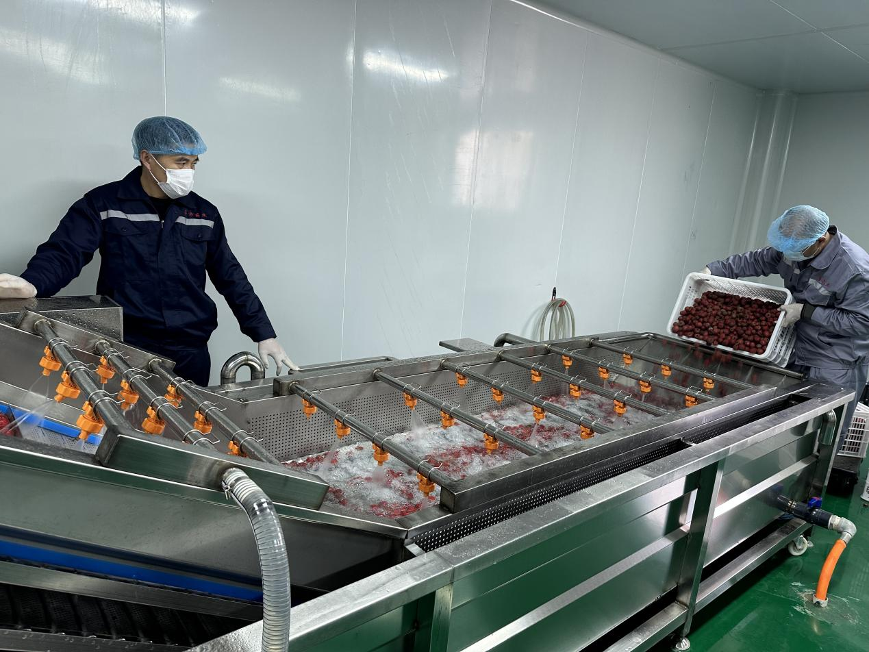魯方藥業(yè)洗潤(rùn)間,工作人員正在清洗山楂