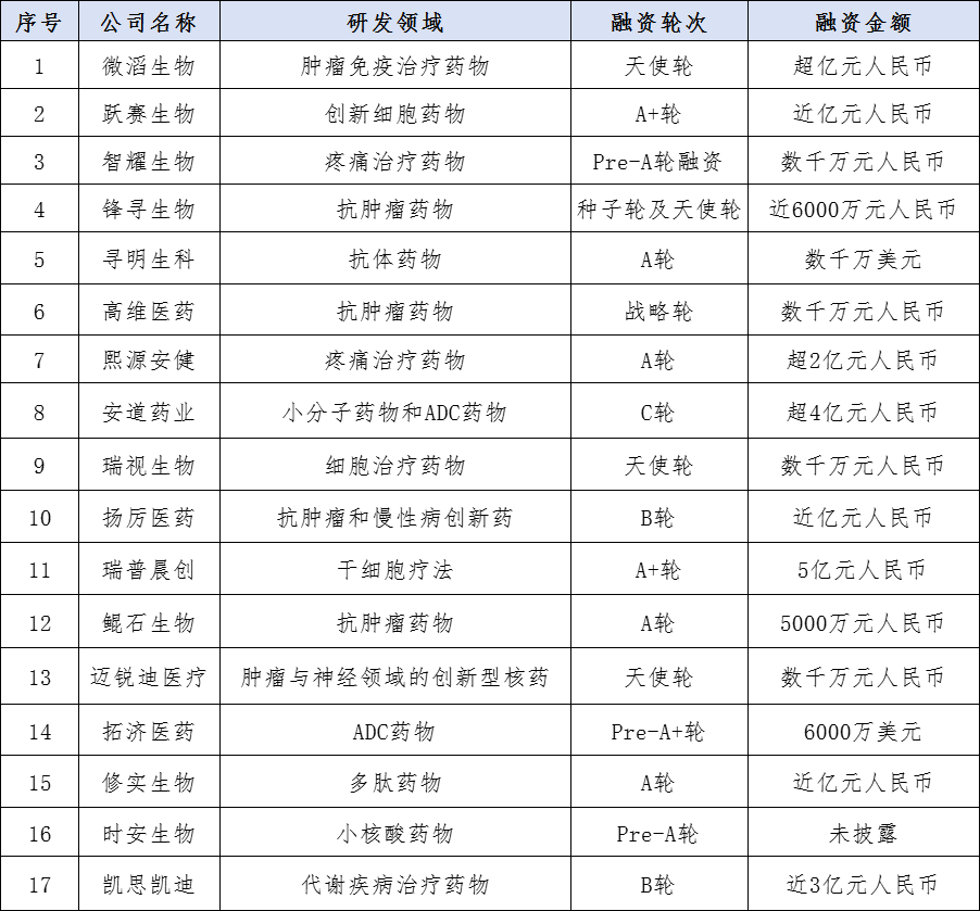 2025年11月份17家國內創(chuàng)新藥企業(yè)完成新一輪融資 ——涉及癌癥、自身免疫性疾病等領域
