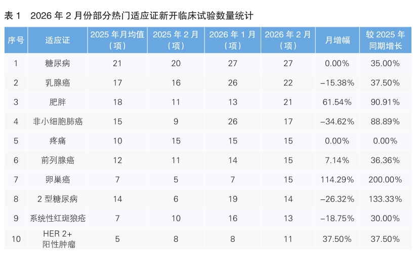 2月份美國(guó)Clinicaltrial數(shù)據(jù)庫(kù)臨床試驗(yàn)數(shù)據(jù)顯示—— 糖尿病、乳腺癌、肥胖等適應(yīng)證成研發(fā)熱點(diǎn)
