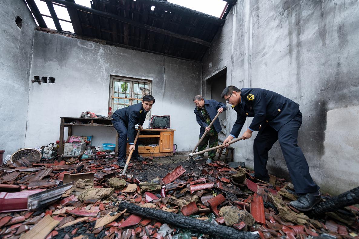 近日,興安縣溶江鎮(zhèn)五甲下村68歲的孤寡老人張昌躍家不幸發(fā)生火災,損失嚴重。上圖為興安縣食品藥品監(jiān)管局駐村第一書記蔣家龍(右一)和駐村干部袁勇久(左一)第一時間趕赴現(xiàn)場捐款捐物,幫忙清理善后,并及時幫其申請到了商業(yè)保險賠付。 趙海軍 蔣家龍 攝影報道