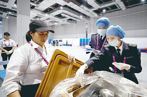 上圖為該局執(zhí)法人員在進(jìn)博會現(xiàn)場檢測食品。陳炅瑋 攝
