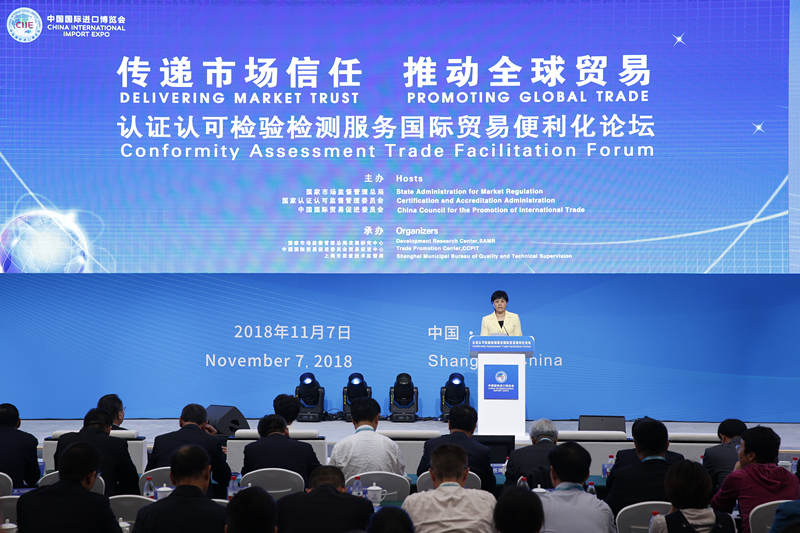 11月7日,首屆中國國際進(jìn)口博覽會“認(rèn)證認(rèn)可檢驗(yàn)檢測服務(wù)國際貿(mào)易便利化”論壇在滬舉辦。本次論壇由國家市場監(jiān)督管理總局、國家認(rèn)證認(rèn)可監(jiān)督管理委員會、中國國際貿(mào)易促進(jìn)委員會共同主辦,由市場監(jiān)管總局發(fā)展研究中心、中國貿(mào)促會貿(mào)易促進(jìn)中心、上海市質(zhì)量技術(shù)監(jiān)督局共同承辦。論壇主題為“傳遞市場信任 推動全球貿(mào)易”,論壇的舉辦是為了更好地發(fā)揮認(rèn)證認(rèn)可檢驗(yàn)檢測“傳遞信任,服務(wù)發(fā)展”的本質(zhì)屬性,加強(qiáng)市場監(jiān)管,優(yōu)化營商環(huán)境,為推動全球貿(mào)易便利化發(fā)展提供更加優(yōu)良的服務(wù)。國家市場監(jiān)督管理總局副局長甘霖、中國國際貿(mào)易促進(jìn)委員會會長高燕、商務(wù)部部長助理任鴻斌等出席。
