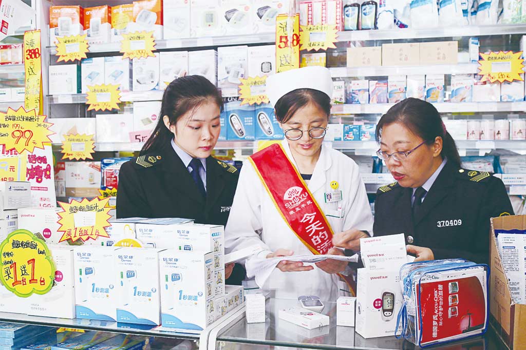 圖為該局執(zhí)法人員在藥店檢查血糖儀產(chǎn)品。本報(bào)記者 王宣淞 攝