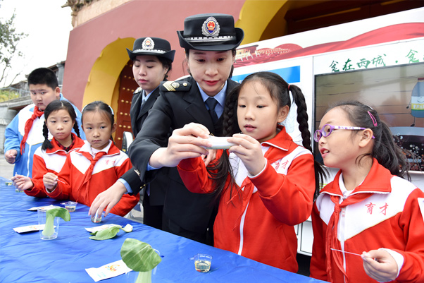 近日,北京市西城區(qū)食品藥品監(jiān)管局的流動(dòng)科普宣傳車開進(jìn)北京育才學(xué)校小學(xué)部。在工作人員的帶領(lǐng)下,孩子們一起通過快檢實(shí)驗(yàn)檢測(cè)學(xué)校食堂的食用油和蔬菜。檢測(cè)活動(dòng)給學(xué)生們上了一堂別開生面的食品安全科普課。張寶康 攝
