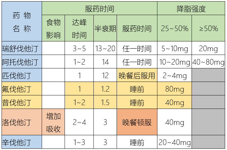 肝臟24小時都在合成膽固醇,半衰期較長的阿托伐他汀和瑞舒伐他汀降脂作用更強,且可任一時間服用;膽固醇合成高峰在午夜到凌晨2點,半衰期較短的辛伐他汀、普伐他汀、氟伐他汀、匹伐他汀應(yīng)在睡前服用。