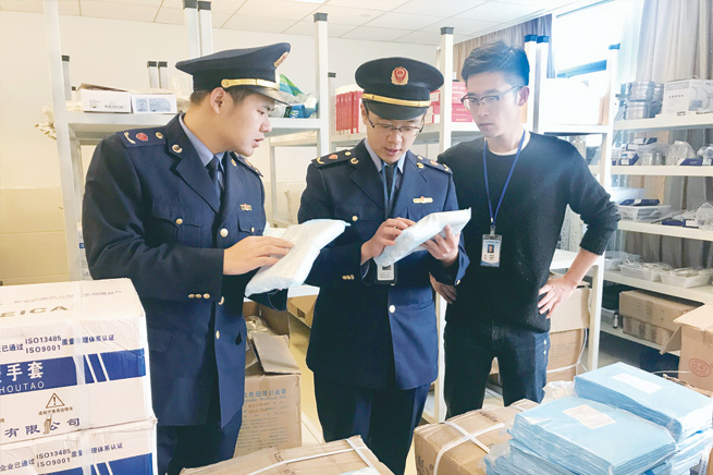 圖為執(zhí)法人員在一家醫(yī)院的醫(yī)療器械庫(kù)房檢查。孫建新 程桑桑 攝影報(bào)道