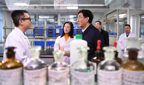 圖為巴音朝魯(左三)一行在吉林省藥品檢驗(yàn)所調(diào)研。本報(bào)記者 葉陽歡 通訊員 曹夢(mèng)南 攝影報(bào)道