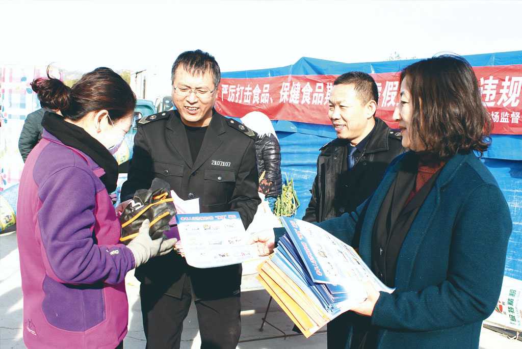 圖為執(zhí)法人員向群眾發(fā)放科普宣傳材料。張本利 孫淵 攝影報道