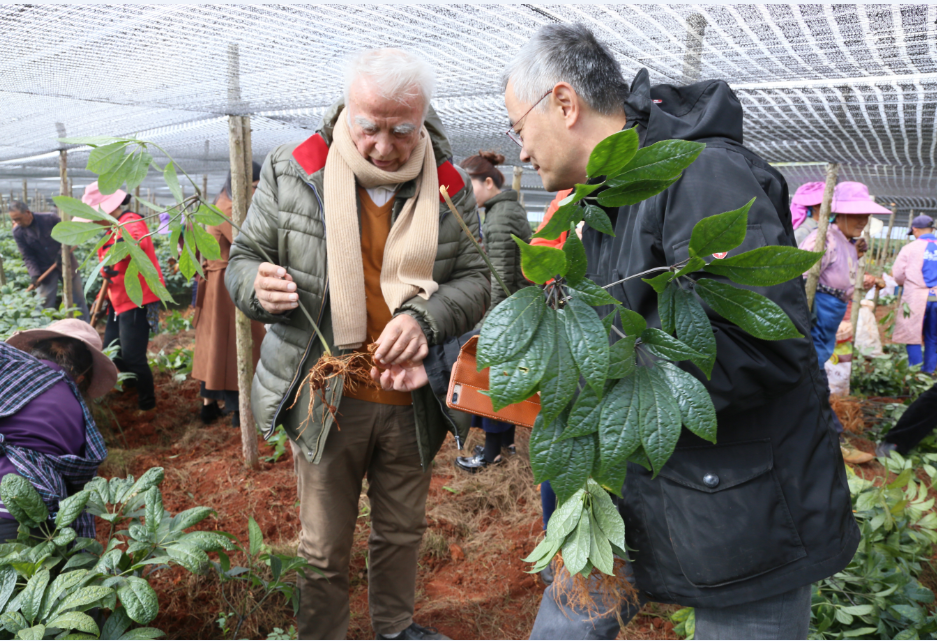 來到片仔癀苗鄉(xiāng)三七規(guī)范化種植基地,正好遇上工作人員在采挖三七。來自日本春日藥局的社長竹田直滿是欣喜,自己采挖了一株并用紙和袋子細(xì)心包裝好,一路上像寶貝一樣地呵護(hù)著。這是他第十二次來文山了,在日本有人稱他為“三七傻瓜”?!拔艺J(rèn)為三七在栽培環(huán)節(jié)是最重要的,來到文山,到苗鄉(xiāng)三七的種植基地,親眼見證安全放心的有機栽培和匠心耕作,每次都感到非常安心和欣喜?!敝裉镎f。