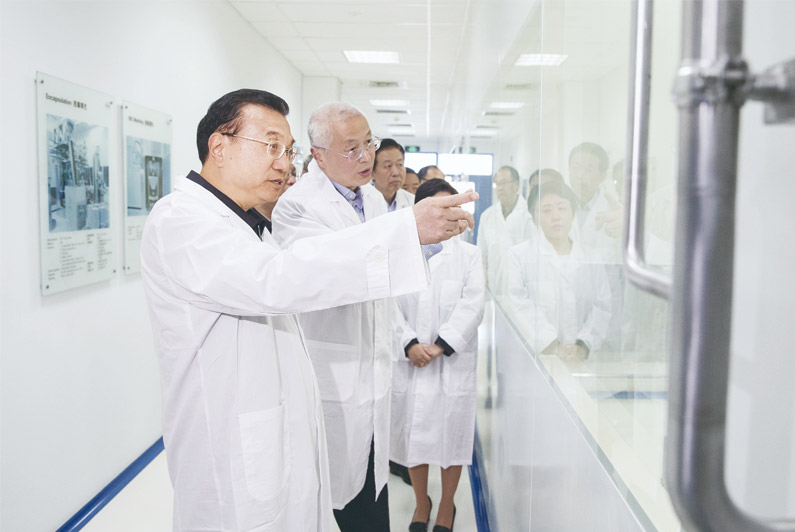 圖①4月10日,李克強總理(左一)在上海羅氏制藥有限公司了解企業(yè)研發(fā)生產(chǎn)情況。李克強指出,會繼續(xù)對抗癌藥品降低關稅,直至降至零關稅。
