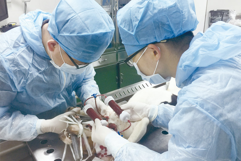 圖④深圳市醫(yī)療器械檢測中心技術人員進行器械產(chǎn)品的動物安全性評價實驗。
