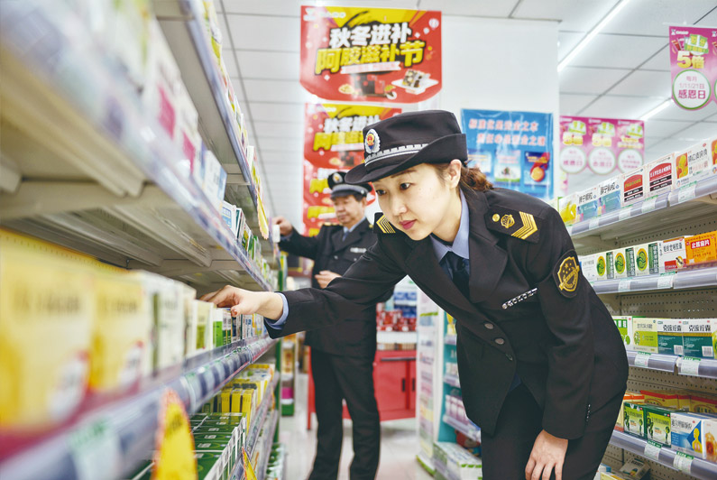 圖⑤寧夏回族自治區(qū)藥品監(jiān)管局工作人員在一家藥店進行現(xiàn)場檢查。