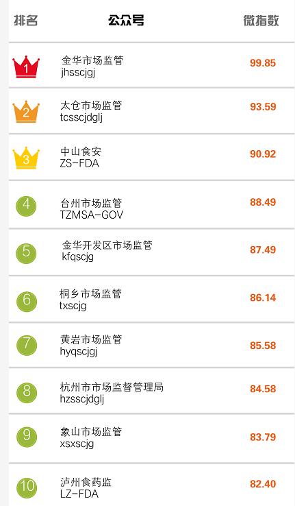 最新TOP10|食藥監(jiān)管部門(mén)政務(wù)微信排行榜