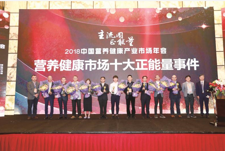 圖為會議發(fā)布"2018營養(yǎng)健康產(chǎn)業(yè)十大正能量事件"。