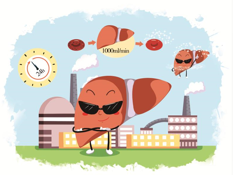 需要說明的是,肝臟是經(jīng)過認(rèn)證的、人體內(nèi)最大的"化工廠"。在肝臟中發(fā)生的化學(xué)反應(yīng)有多少種呢?高達(dá)1500種以上。這種小體積、高產(chǎn)出的工作效率,完全可以秒殺現(xiàn)在的所有化工廠。每分鐘流過肝臟的血液有多少呢?大概1000毫升。您可注意了,這1000毫升的血液可不是一走一過,揮一揮衣袖,不帶走一片云彩,肝臟是要開足馬力地干活兒才行,化有毒為無毒,化半成品為成品。簡單計算一下,每分鐘1000毫升,那么一小時是多少?是6萬毫升,也就是說啊,肝臟每小時處理約60千克的血液,24小時的工作量是處理將近1噸半的血液??梢韵胂螅@是多大的一個工作量,所以給肝臟發(fā)一個優(yōu)秀勞模的獎狀是一點(diǎn)兒也不過分的。您可能要擔(dān)心了,肝臟這么玩命的干法,不休息啊?累壞了可怎么辦?上面說了,獨(dú)此一家,沒有替補(bǔ)。實(shí)際上,肝臟擁有一個無與倫比的優(yōu)勢,那就是自我恢復(fù)能力,日常的工作它只要有1/3的肝細(xì)胞干活兒就夠了,看來給勞模獎還不夠,還要發(fā)一個績效獎。它可能采取的是輪休制,否則早就罷工了??蛇@并不意味著您可以肆無忌憚地折騰,比如天天喝酒,老讓它連軸轉(zhuǎn),它可就真給您撂挑子了。一旦肝臟不好好干活兒,您就體會到老實(shí)人是怎么發(fā)脾氣的了。到時候您就攤上事兒了,您攤上大事了!