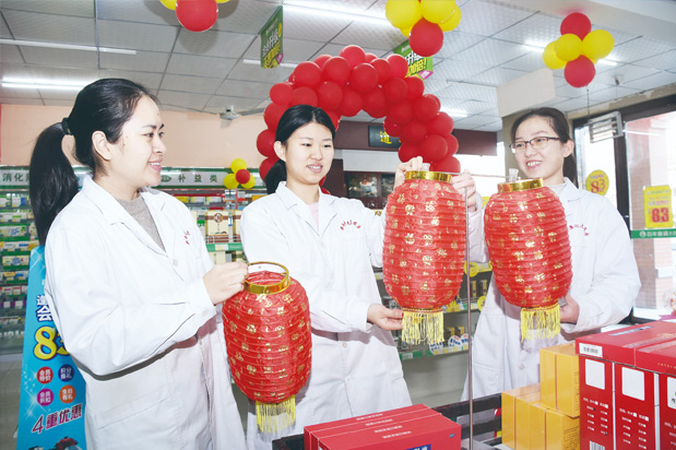 迎新年,賀新歲!元旦前夕,山東高唐縣鼓樓路百年康潤藥店工作人員在店內(nèi)懸掛燈籠、氣球、彩帶等,營造濃厚的節(jié)日氛圍,迎接2019年的到來。李慧 攝
