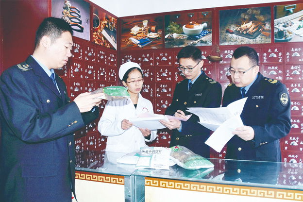 圖為執(zhí)法人員在一家藥店檢查中藥飲片。李慧 攝