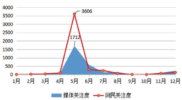從整體輿情走勢看,如圖1所示,呈現(xiàn)“山峰式”特征,網(wǎng)民關(guān)注度遠高于媒體關(guān)注度。