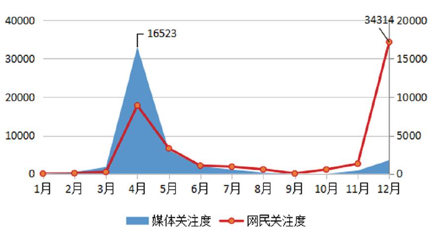 從整體關(guān)注度看,如圖1所示,輿情呈現(xiàn)“波浪式”發(fā)展特征。總體來看,事件在社交媒體的關(guān)注度高于新聞媒體。