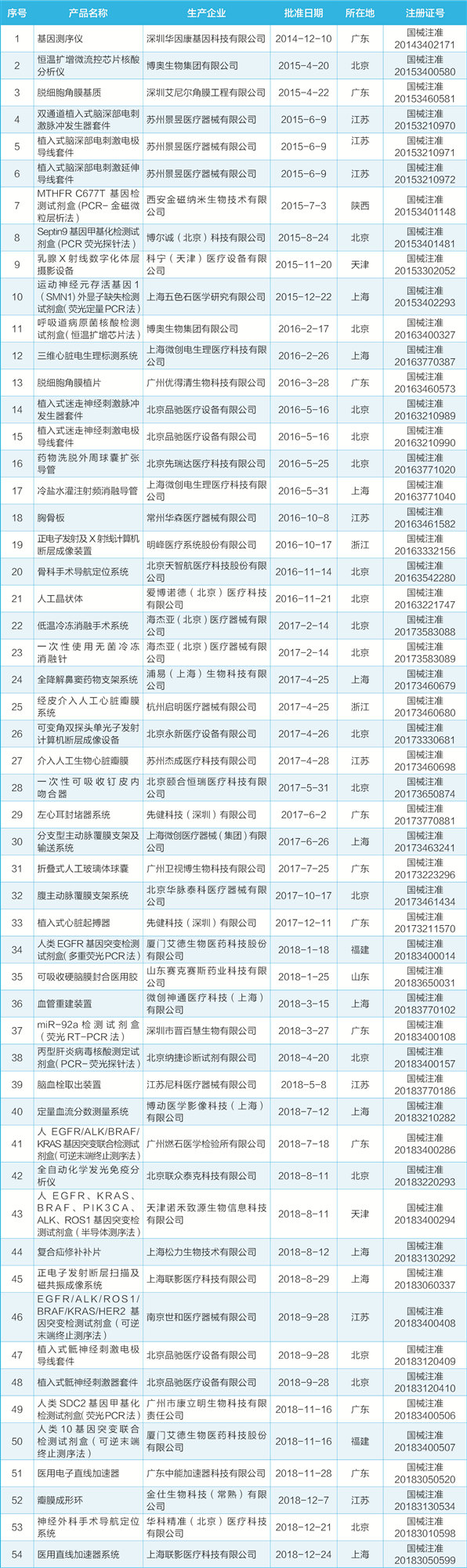 國家藥品監(jiān)管部門批準(zhǔn)創(chuàng)新醫(yī)療器械列表: