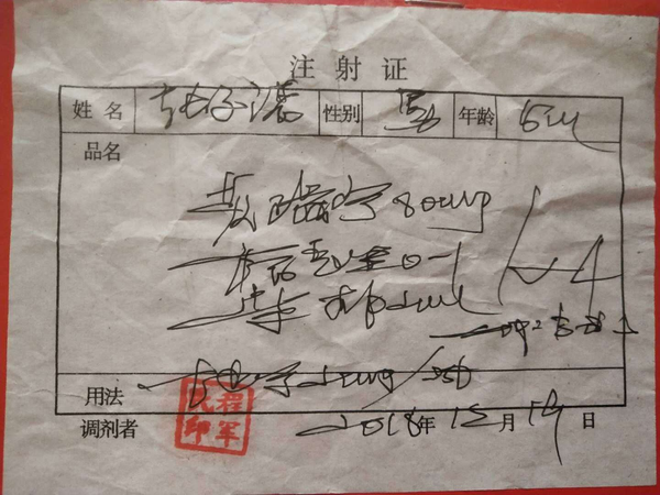 杜良鄉(xiāng)衛(wèi)生院開具的注射證