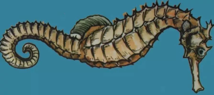 小海馬(海蛆):體形小,長(zhǎng)7~10cm。黑褐色。節(jié)紋和短棘均較細(xì)小。