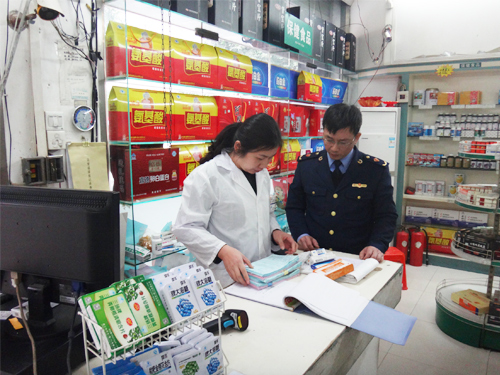 圖為監(jiān)管人員在一家藥店檢查。本報記者 汪斌 通訊員 黃慧君 攝影報道