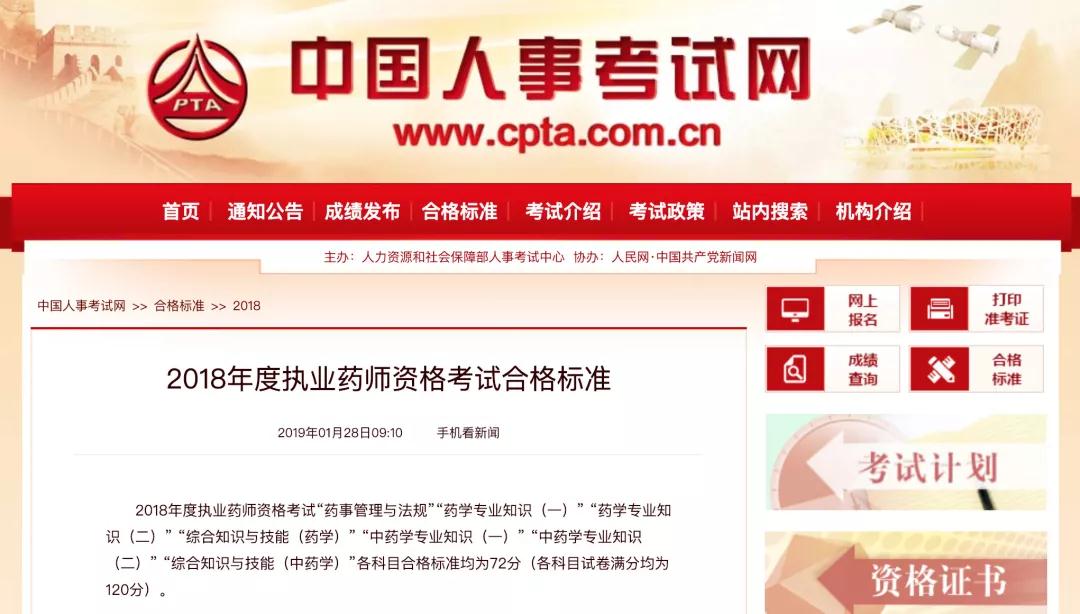 剛剛,中國人事考試網(wǎng)公布了《2018年度執(zhí)業(yè)藥師資格考試合格標(biāo)準(zhǔn)》,確定2018年度執(zhí)業(yè)藥師資格考試合格標(biāo)準(zhǔn)各科分?jǐn)?shù)為72分。見下圖: