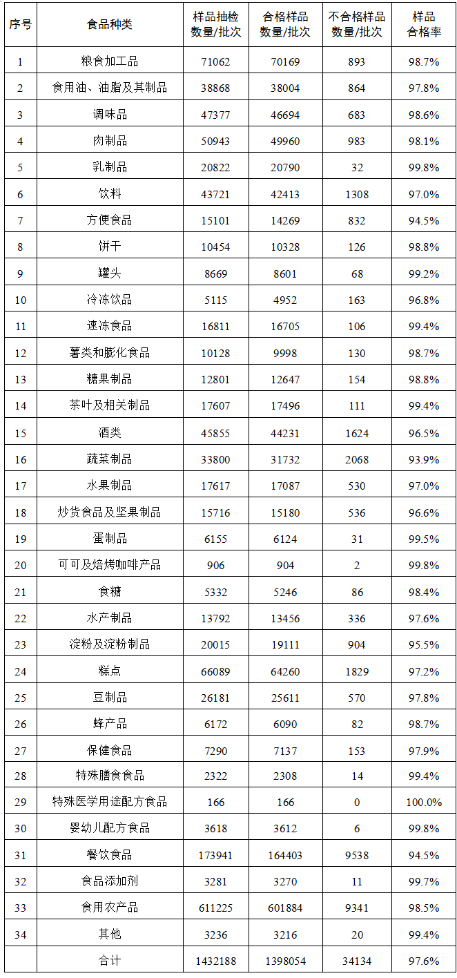 2018年第四季度食品抽檢97.6%合格,快來看看大宗食品合格率如何?