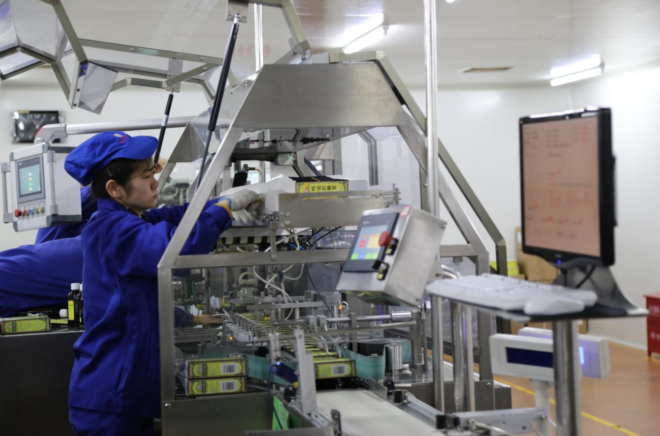 2月13日,貴州百靈企業(yè)集團制藥股份有限公司工人在生產(chǎn)線上調(diào)試機器。