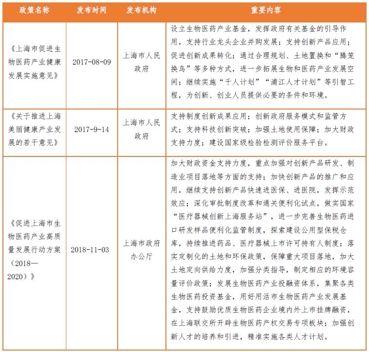 上海市主要生物醫(yī)藥產(chǎn)業(yè)政策