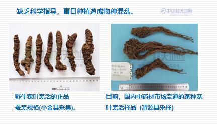 圖8 羌活盲目引種已經(jīng)造成物種混亂、有效成分含量下降。