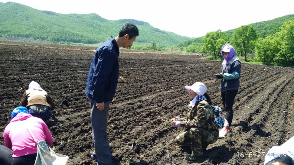 圖5 2016年5月27日,黑龍江伊蘭縣某鄉(xiāng)在移栽甘肅來的黨參苗子。