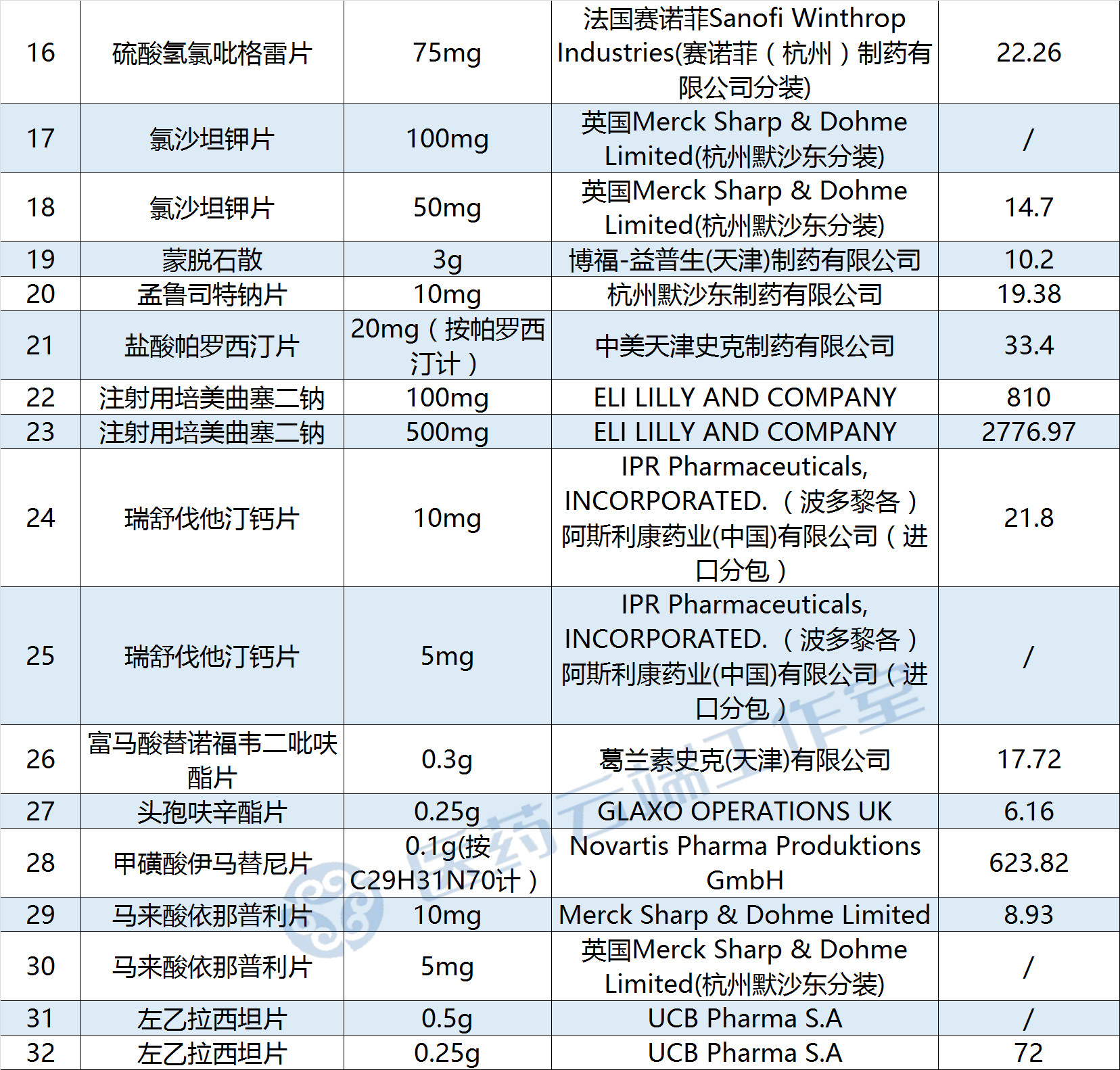 我們關(guān)注到,在4+7集采中報價最高而落選的23品種、32個品規(guī),出現(xiàn)在談判范圍中,如下表所示: