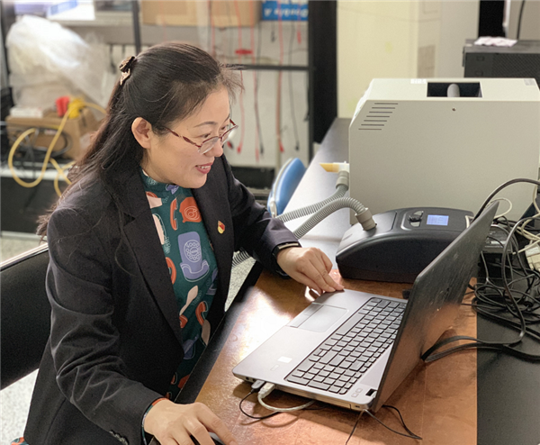 圖為遼寧省檢驗檢測認證中心器檢院檢測四室主任柳晶波正在檢測家庭用無創(chuàng)呼吸機的性能