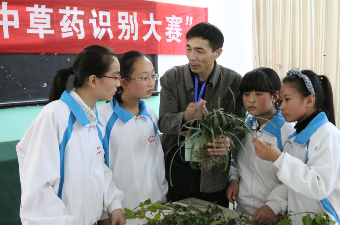 云臺中學鄉(xiāng)土中草藥識別大賽,吳舟在給同學們作輔導。