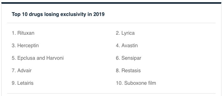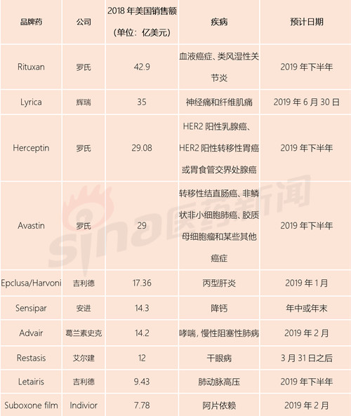 根據(jù)報(bào)道,在2019年有多款重磅專利藥將失去市場獨(dú)占權(quán),面臨仿制藥的競爭。這些專利藥即將遭遇“專利懸崖”,隨著便宜的仿制藥涌入,毫無懸念,這些專利藥的價格將大幅下降。