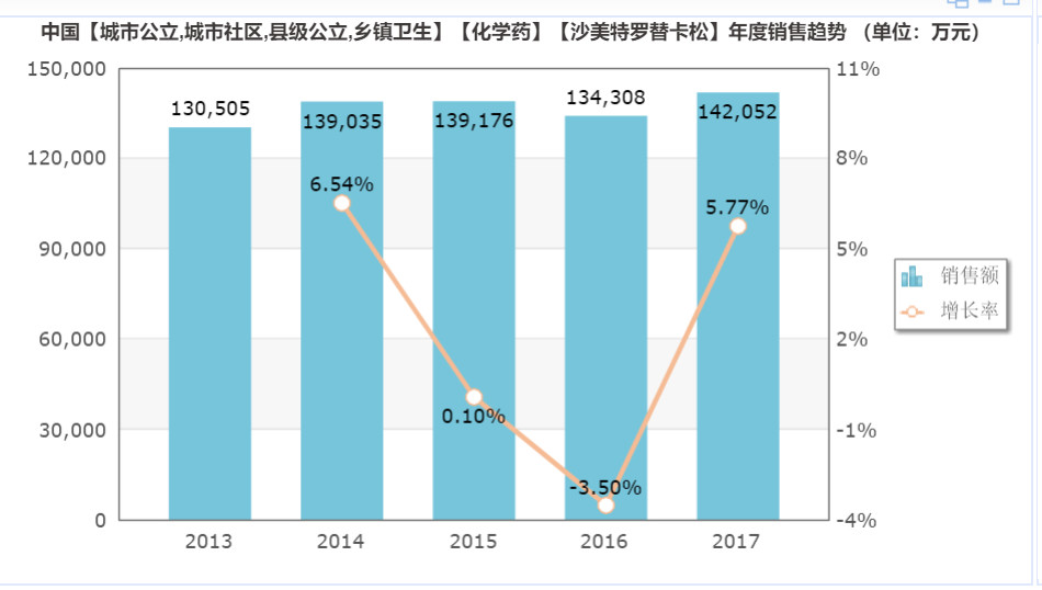 米內(nèi)網(wǎng)數(shù)據(jù)顯示,2018年舒利迭在中國醫(yī)院市場的銷售額為14.2億元,近幾年市場增長比較平緩,基本處于停滯狀態(tài)。接下來,隨著仿制藥逐漸獲批,舒利迭的銷量將會進(jìn)一步受到影響。
