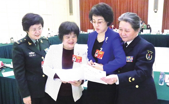 3月6日下午,全國政協(xié)委員、軍事醫(yī)學(xué)科學(xué)院生物工程研究所所長陳薇(左一),全國政協(xié)委員、南寧市第四人民醫(yī)院艾滋病科護士長杜麗群(左二),全國政協(xié)委員、中國工程院院士夏照帆(右一),全國政協(xié)委員、國家食品安全風(fēng)險評估中心主任盧江(右二)在會議間隙就政府工作報告中關(guān)于保障和改善民生的內(nèi)容進行討論。(《中國醫(yī)藥報》記者蔣紅瑜 攝)