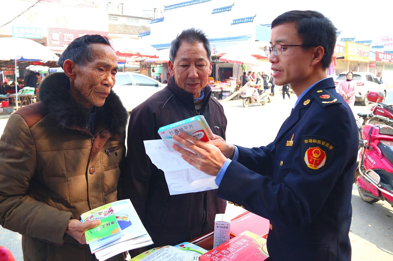 “3·15”來臨之際,江西省新余市渝水區(qū)市場(chǎng)監(jiān)管局組織執(zhí)法人員深入鄉(xiāng)村開展藥品安全知識(shí)宣傳咨詢活動(dòng),以發(fā)放宣傳資料、實(shí)物展示、現(xiàn)場(chǎng)咨詢等方式,向群眾宣傳安全用藥知識(shí)。圖為3月12日該局工作人員在羅坊鎮(zhèn)接受群眾咨詢。廖海金 攝