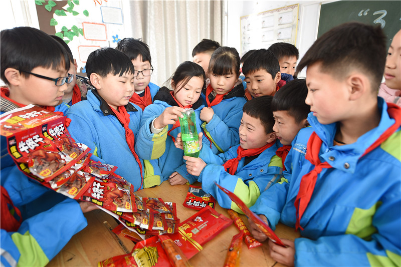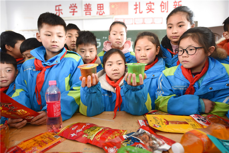 圖為東??h黃川鎮(zhèn)中心小學(xué)學(xué)生正在識別“三無”食品。通訊員 張正友 攝