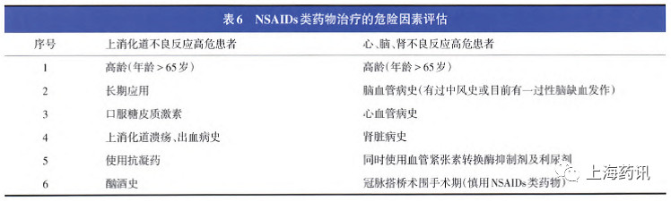 口服藥物:口服NSAIDs類藥物的療效與不良反應(yīng)對(duì)于不同患者并不完全相同,如果患者上消化道不良反應(yīng)的危險(xiǎn)性較高,可使用選擇性COX-2抑制劑,如使用非選擇性NSAIDs類藥物,應(yīng)同時(shí)加用H2受體拮抗劑、質(zhì)子泵抑制劑或米索前列醇等胃黏膜保護(hù)劑。所有的NSAIDs都會(huì)增加血栓栓塞事件發(fā)生的風(fēng)險(xiǎn),但增加的部分風(fēng)險(xiǎn)仍遠(yuǎn)低于傳統(tǒng)的危險(xiǎn)因素,如高血壓、抽煙等。如果患者心血管疾病危險(xiǎn)性較高,應(yīng)慎用NSAIDs類藥物(包括非選擇和選擇性COX-2抑制劑。NSAIDs有天花板效應(yīng),同時(shí)使用兩種不同的NSAIDs類藥物不但不會(huì)增加療效,反而會(huì)增加不良反應(yīng)的發(fā)生率。