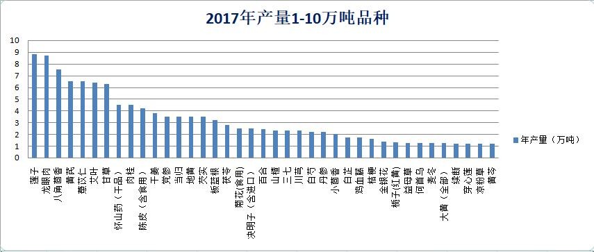 圖12 2017年,產(chǎn)量1萬-10萬噸的藥食兩用品種(天地云圖大數(shù)據(jù))
